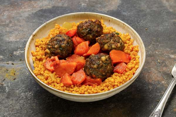 Une recette gourmande d'inspiration orientale à base de boulettes keftas et de boulghour parfumé. Le tout, servi avec une sauce au concentré de tomates, aux carottes fondantes et aux épices !