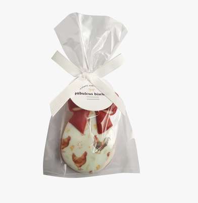 Célébrez Pâques avec ce biscuit en forme d’œuf, une création originale de Fabulous Biscuits. Fabriqué et décoré à la main dans l'atelier lyonnais de la marque, c'est une gourmandise artisanale pleine de charme.