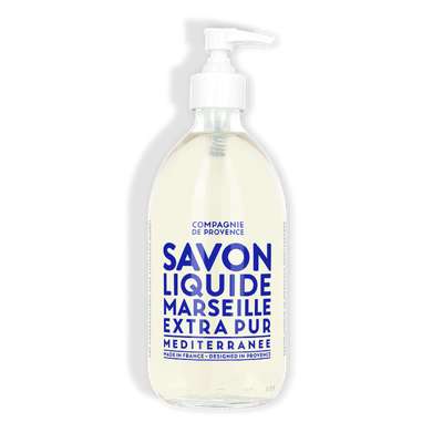 Les savons liquides Compagnie de Provence sont fabriqués en chaudron. Présentés en flacon pompe en plastique au design très épuré, ces savons s'affichent superbement dans la cuisine ou la salle de bain, et peuvent être remplis à nouveau avec le flacon recharge correspondant