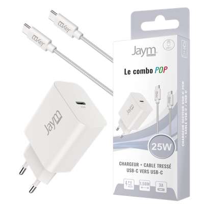 La collection POP de Jaym® et son fameux pack combo : chargeur secteur + câble, existent désormais en version USB-C POWER DELIVERY !