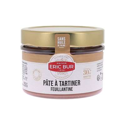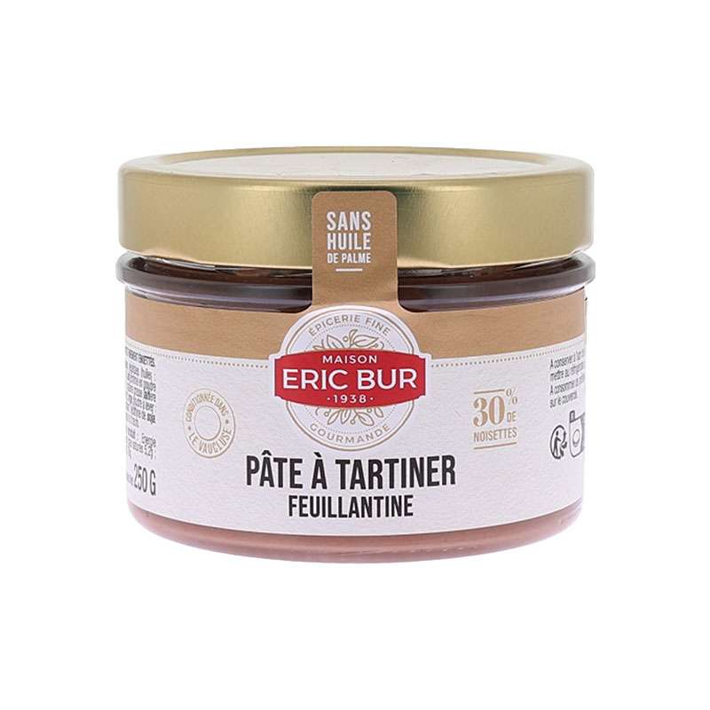 Sucre, pâte de noisettes 30%, graisses végétales (huiles : tournesol, grignon d'olives, carthame et beurre de cacao), lait écrémé en poudre 11%, biscuit finement émietté 5% (farine de blé, sucre, matière grasse laitière anhydre, sucre de lait, protéines de lait, sel, extrait de malt (orge), poudre à lever : bicarbonate de sodium), cacao maigre en poudre, émulsifiant : lécithine de soja. Peut contenir des traces d'arachides, d'autres fruits à coque et d'oeufs.
