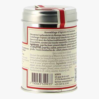 L'assemblage fajitas de Terre Exotique apporte une touche mexicaine à vos plats. Ce mélange d'épices équilibré est idéal pour vos fajitas, qu'elles soient végétariennes ou non.
