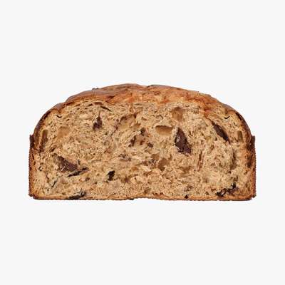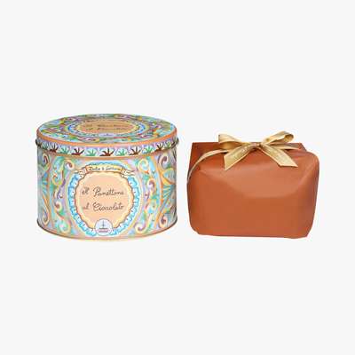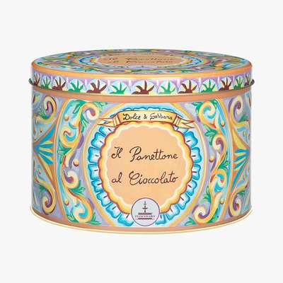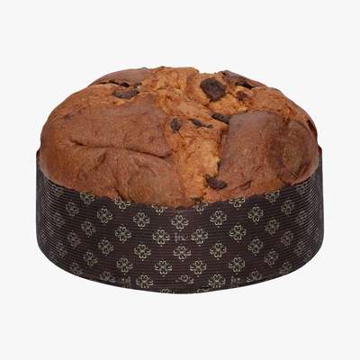 Ce panettone, sans raisins secs ni agrumes, est agrémenté de morceaux de chocolat noir et au lait, offrant une gourmandise irrésistible.