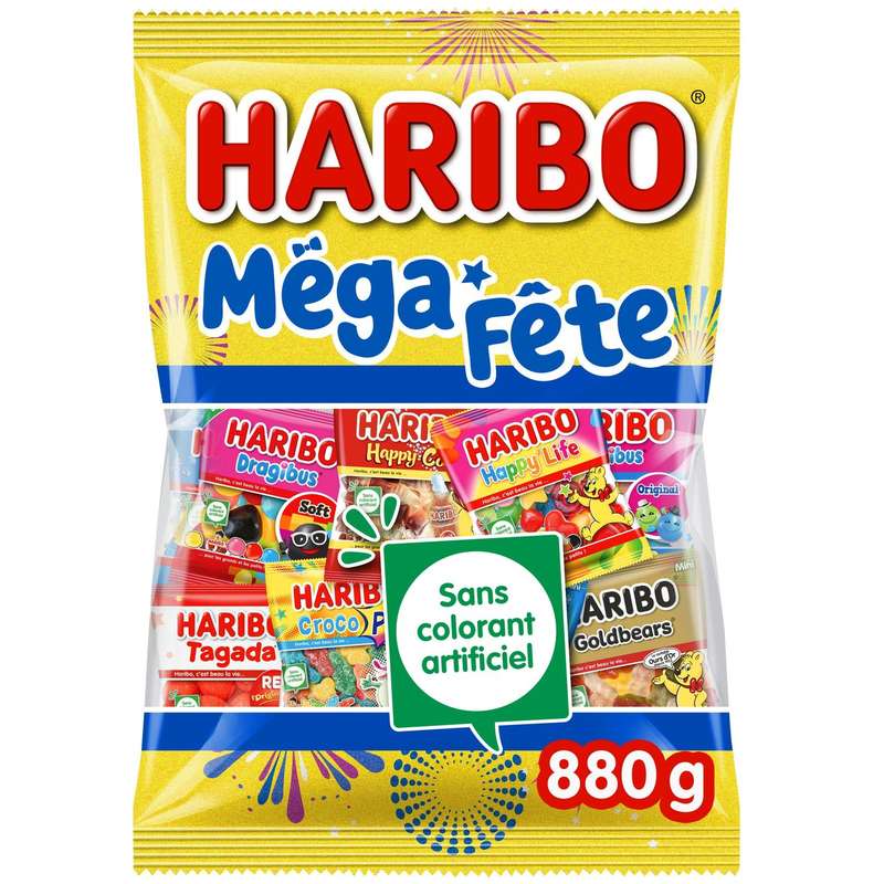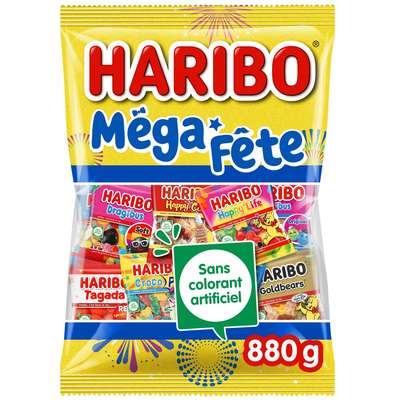 Sirop de glucose; sucre; gélatine; dextrose; amidon; sirop de sucre mélassé; farine de BLÉ; amidon de BLÉ; acidifiants: acide citrique, acide malique; extrait de réglisse; maltodextrine; sel; graisse de palme; humectants: sirop de sorbitol, sorbitol; correcteurs d'acidité: citrate tricalcique, malate acide de sodium, citrate monosodique, citrate trisodique, carbonate acide de sodium; huile de tournesol; concentrés de fruits et de plantes: citron, orange, pomme, kiwi, baie de sureau, cassis, aronie, raisin, fruit de la passion, mangue, carthame, spiruline, hibiscus, radis, patate douce, cerise, carotte; extrait de baie de sureau; arôme; émulsifiant: mono- et diglycérides d'acides gras; jus de fruits concentrés: pomme, orange, citron, fraise, framboise, ananas, cerise; colorants: curcumine, carmins, bleu patenté V, charbon végétal, carotènes végétaux, lutéine, anthocyanes; agents d'enrobage: cire d'abeille blanche et jaune, cire de carnauba; sirop de caramel.