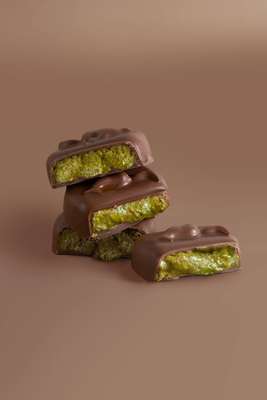 Barre en chocolat au lait fourré de pate de pistache et kadaif croustillant