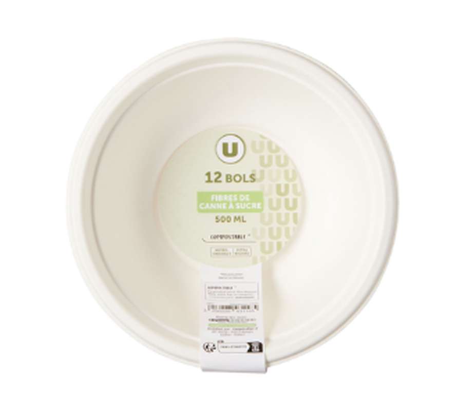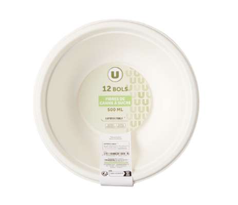Bol fibres de canne à sucre 15,5 cm, U (12 x 500 ml)