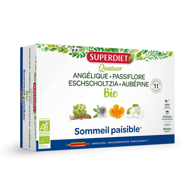 Quatuor sommeil paisible BIO, Superdiet (20 ampoules de 10ml)