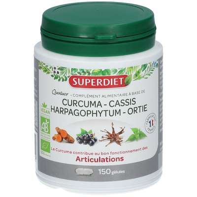 Le Curcuma est reconnu pour aider vos articulations à fonctionner normalement. Superdiet l'associe au Cassis, à l'Harpagophytum et à l'Ortie pour contribuer à votre bien-être articulaire.