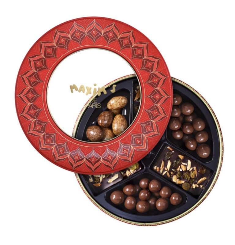 Une boîte ronde aux allures de fête à laquelle il sera difficile de résister : amandes & noisettes enrobées de chocolat, carrés de chocolat aux amandes et aux raisins sec, perles de céréales enrobées de chocolat... Autant de tentations chocolat qui rivalisent de gourmandise et de séduction !