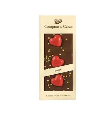 Un cœur tendre, légèrement enrobé de chocolat blanc, est dissimulé dans notre tablette cœur de lait. Cette jolie confiserie rose au délicieux goût de chocolat au lait donne un regain d'énergie instantané.