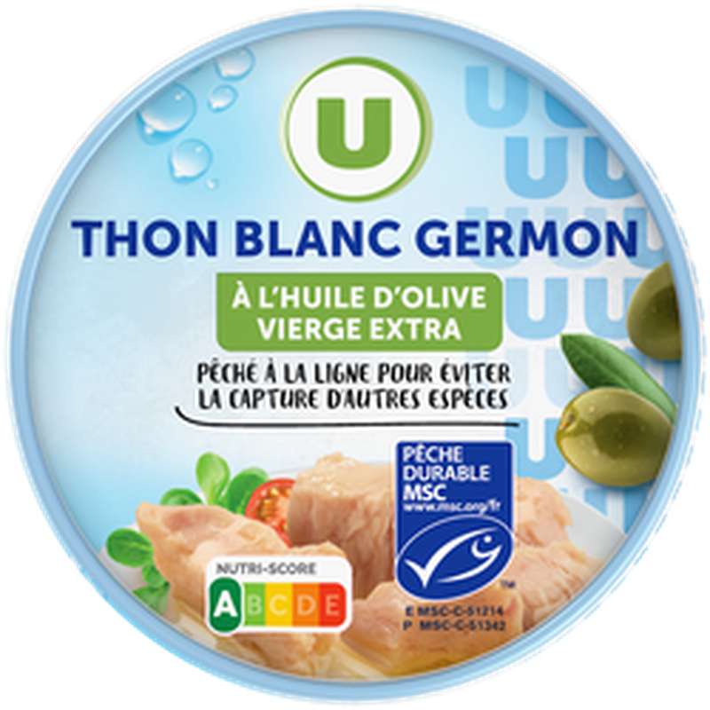 Thon blanc entier à l'huile d'olive, U (150 g)
