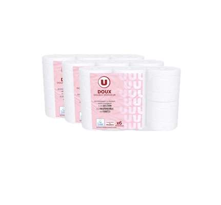 Lot de 3 Papier toilette doux blanc double épaisseur, U (x 6 rouleaux)
