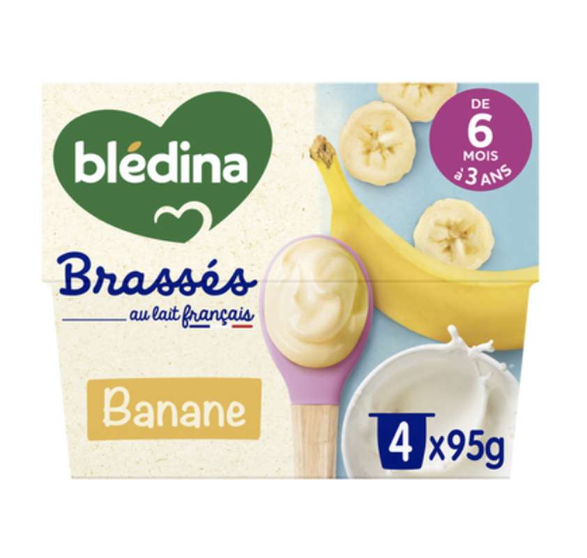 Brassés saveur banane - dès 6 mois, Blédina (4 x 95 g)