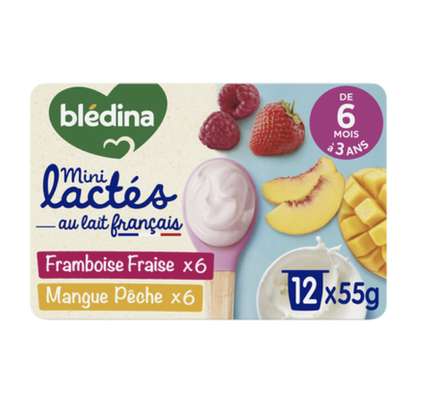Mini lactés Fruits rouges/Fruits du soleil - dés 6 mois, Blédina (12 x 55 g)