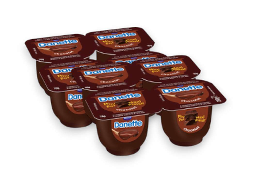 "Danette Mini, un mini format pour un MAXI plaisir. Danette crème dessert chocolat c'est de la crème et du bon lait français avec un bon goût de vanille et toujours la petite touche de bonne humeur qui va avec. Fabriquée dans nos laiteries de Saint-Just-Chaleyssin (38) et de Bailleul (59), cette crème Chocolat à la texture onctueuse en petit format est idéale pour une touche sucrée en fin de repas. Danette, c'est la crème dessert pour laquelle tout le monde est toujours debout !