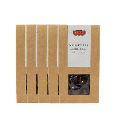 Laissez-vous séduire par le croquant irrésistible des noisettes grillées enrobées de chocolat noir. Ces bouchées élégantes offrent un véritable festival de saveurs, parfaites pour transformer vos pauses en moments de raffinement. Découvrez également d'autres saveurs gourmandes : noisettes au chocolat lait, amandes au chocolat lait et amandes au chocolat noir.