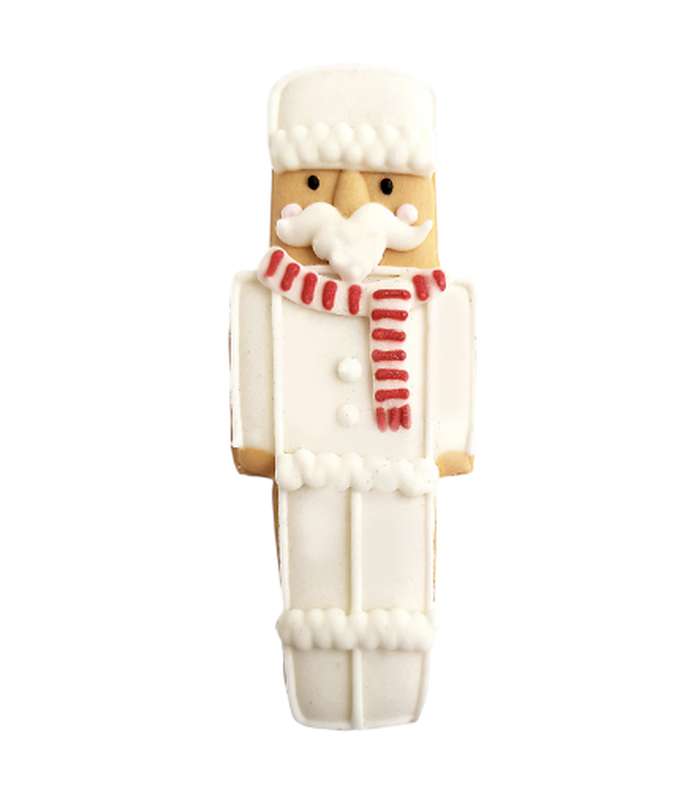Rendu célèbre par le conte allemand « Casse-Noisette et le roi des souris », ce personnage festif habille ce grand biscuit d’un glaçage ludique et appétissant. Minutieusement confectionnés à partir de farine de blé et de blanc d’œuf, les sablés de Fabulous Biscuits dévoilent une texture croquante aux arômes subtils de jus de citron, rehaussés d’une pointe de sel de Guérande.