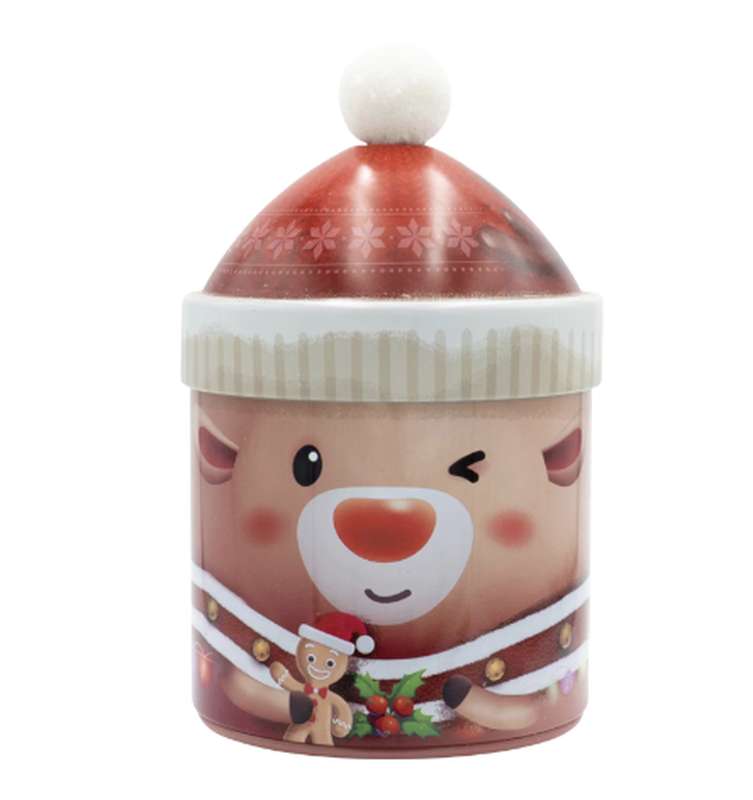 Derrière la boîte métallique en forme de renne avec un petit pompon se cachent de savoureux cookies aux savoureuses pépites de chocolat. Croquants à l’extérieur, moelleux à l’intérieur, ils raviront petits et grands autour d’un goûter festif ou d’un café gourmand. Un cadeau à offrir ou à savourer soi-même.