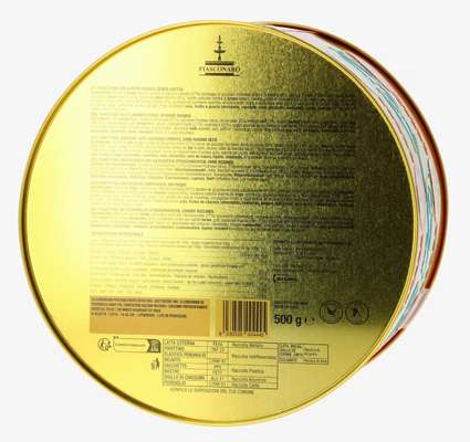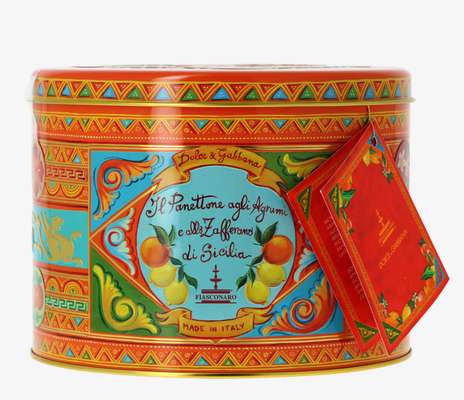 Dans cette grande boîte en métal très élégante et au design coloré et raffiné, signée Dolce & Gabbana, se cache un savoureux panettone de la maison Fiasconaro, pâtisserie sicilienne créée en 1953. Une recette qui se distingue par son absence de raisins secs, mettant en avant en valeur les agrumes confits. Ce gâteau brioché se dégustera idéalement avec un thé, un café ou un traditionnel limoncello.