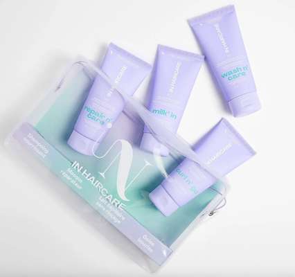 La trousse Travel n’ Go réunit les 4 essentiels IN haircare en format 100 ml, parfaits pour offrir, tester la gamme ou partir en week-end sans sacrifier sa routine :