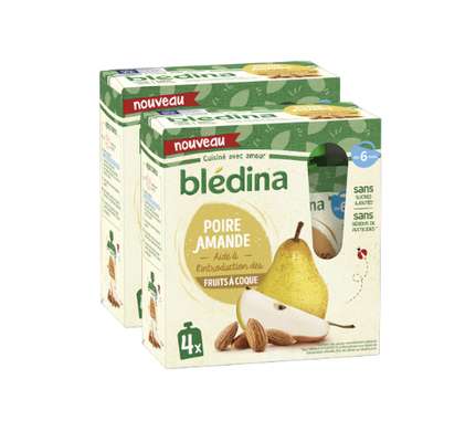 Chez Blédina, nous nous engageons en innovant pour proposer des recettes uniques pour la diversification alimentaire des bébés. blédina vous accompagne avec ses nouvelles recettes uniques pour introduire les fruits à coque dans l'alimentation de bébé ! Découvrez notre nouvelle recette gourmande associant la poire et l'amande.