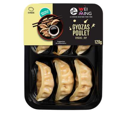 Embarquez pour un voyage en Asie avec WEIMING : découvrez l'authenticité de nos gyozas au poulet : une explosion de saveurs délicatement enveloppée dans une pâte fine !