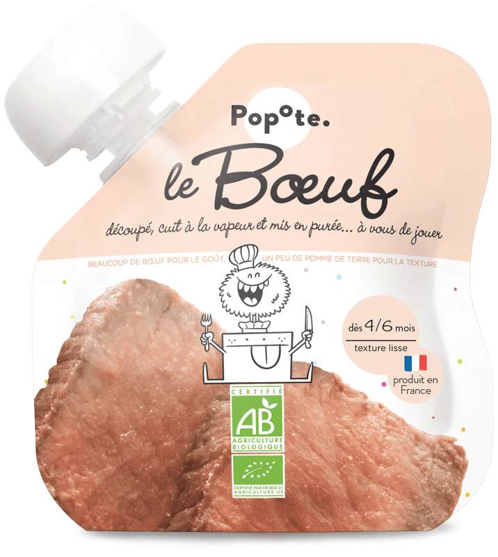 …mais pas n’importe lequel ! Chez Popote, on sélectionne avec soin nos morceaux de bœuf* bio origine France. Et pour bien vous seconder en cuisine nous les avons cuits et finement mis en purée. Tout ça pour vous laisser le meilleur pour la fin : imaginer toutes les recettes que vous voulez pour régaler Bébé ! Une est sûre : notre bœuf, c’est pas du bluff !