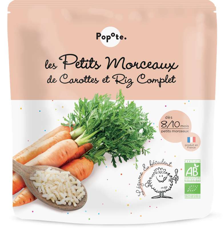Cette purée de carottes et riz complet bio, sélectionnés, cuits et moulinés, est le repas idéal pour introduire de nouvelles textures et premiers morceaux tendres à Bébé. On sait déjà qu’il va se régaler !