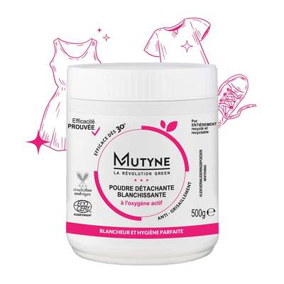 Pour les taches tenaces et incrustées ajoutez 2 doses de poudre détachante directement dans le tambour de votre machine en plus de votre lessive Mutyne, et lancez votre machine.