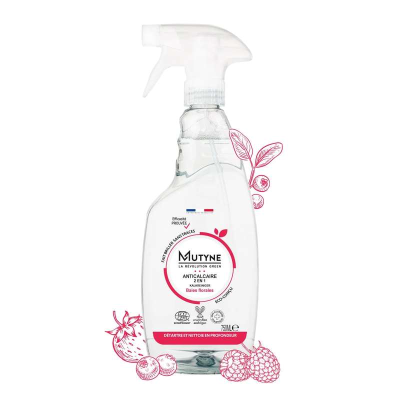 Enfin un nettoyant anticalcaire qui sent bon ! Un parfum Baies Florales aux notes de fruits rouges.
