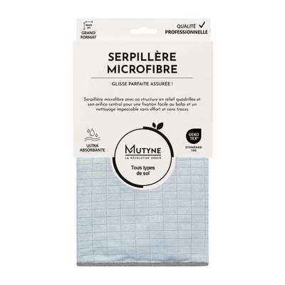 Une serpillière microfibre d'excellence avec sa structure en relief quadrillée et son orifice central, pour un nettoyage impeccable sans effort et sans traces sur tous les sols.