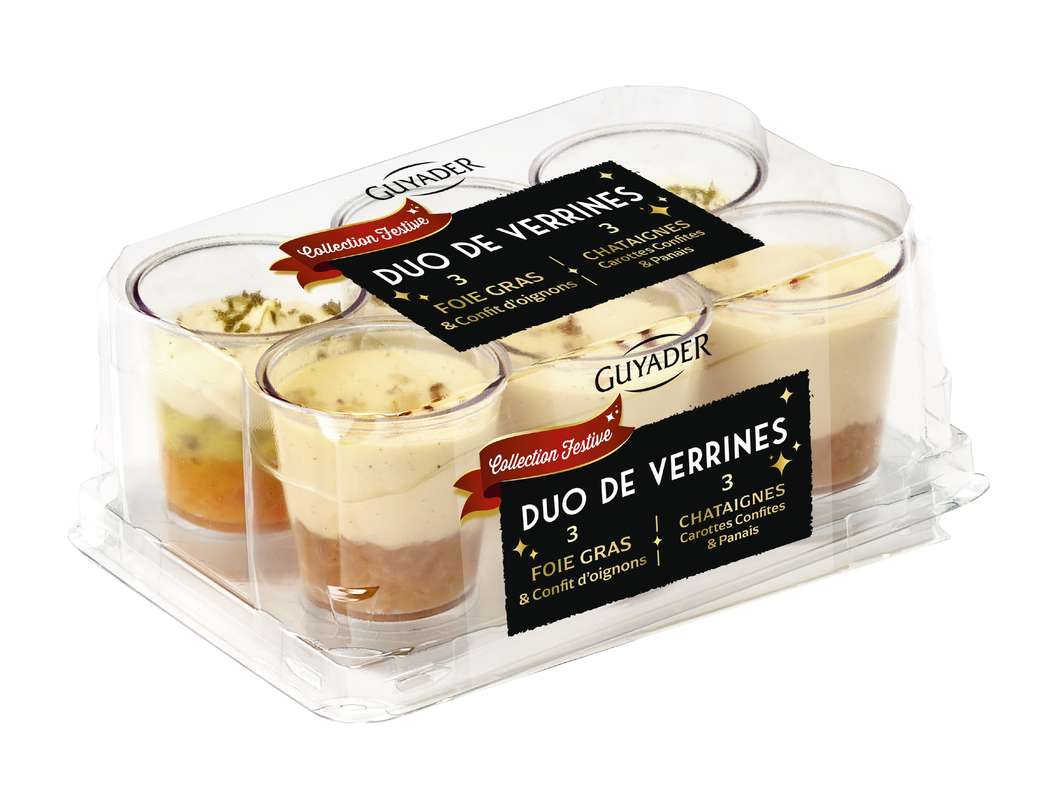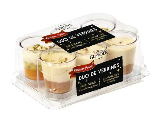 Duo de verrines : Foie gras & confit d'oignons et Châtaigne, carottes et panais, Guyader (6 x 40 g)