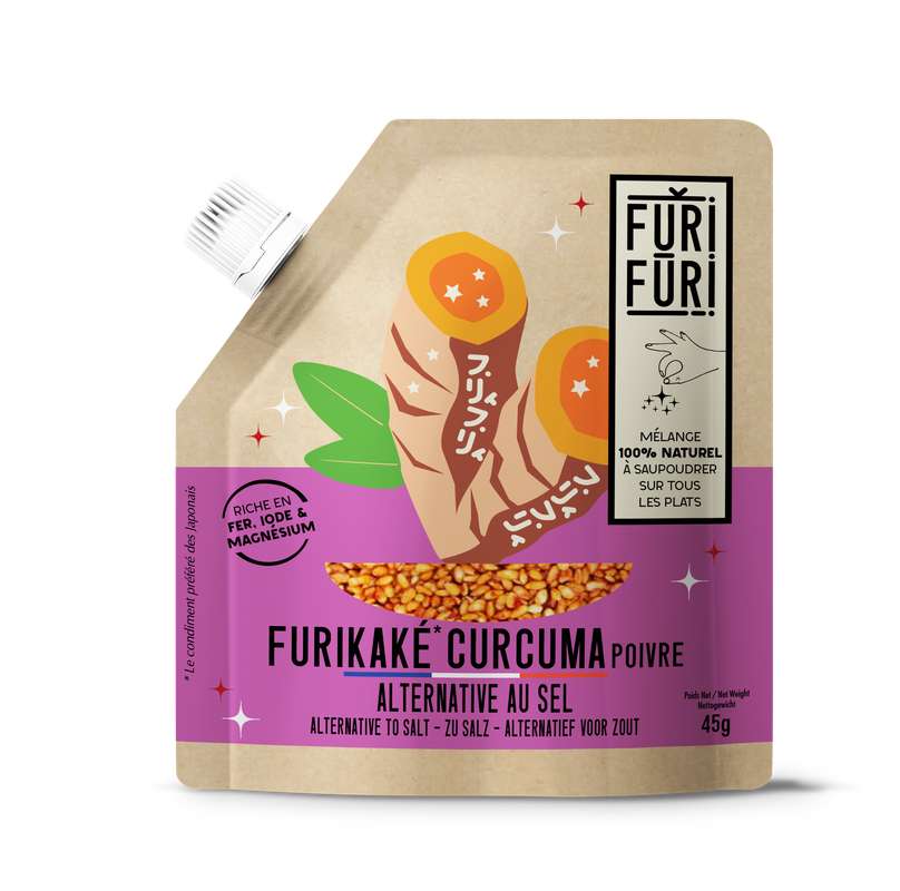 FURIFURI CURCUMA : reconnu pour ses puissantes propriétés antioxydantes, anti-inflammatoires et anti-fatigue, se combine harmonieusement avec le poivre, pour offrir une saveur à la fois intense et parfaitement équilibrée.