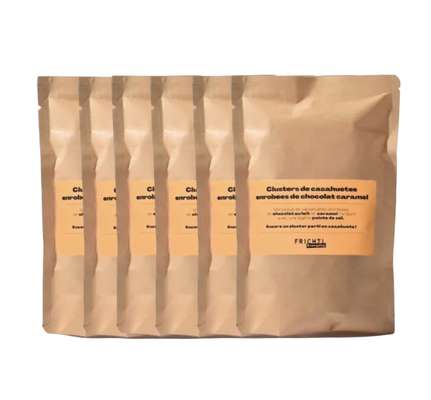 Des morceaux de cacahuètes enrobés de chocolat et caramel fondant avec une légère pointe de sel. Encore un cluster parti en cacahuètes !