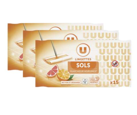 Lot de 3 x Lingettes pour les sols parfum agrumes, U (x 15, 499 g)