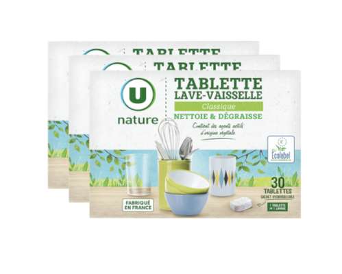 Lot de 3 x Tablettes lave-vaisselle classique, U Nature ( x 30)