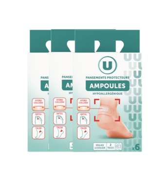 Lot de 3 x Pansements protecteurs spécial anti-ampoules, U (x 6)