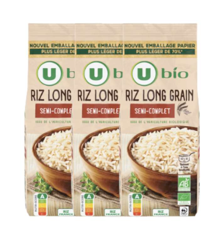Lot de 3 x Riz semi complet long BIO, U BIO (500 g)