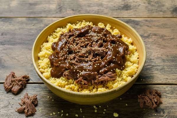 Boeuf effiloché, semoule et sauce mole, Frichti (340 g)