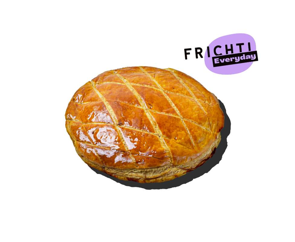Une galette des rois pour 6 à 8 personnes made in Frichti, garnie d'une généreuse crème d'amandes maison. Fève + Couronne