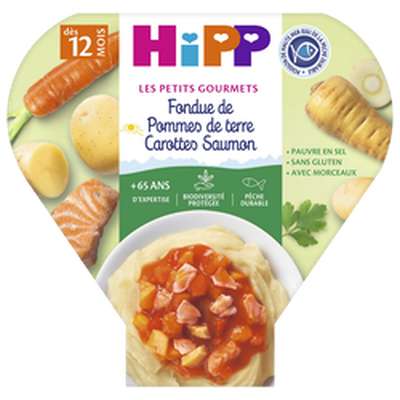 Pour manger comme des grands ! Les Petits Gourmets sont des recettes gourmandes pour le déjeuner, dans des assiettes pratiques et sûres. Idéales pour que Bébé apprenne à manger comme un grand, préparées avec : ✔ du saumon issu de la pêche durable, ✔ des légumes bio récoltés à maturité et cuits à la vapeur, ✔ des morceaux adaptés à son âge.
