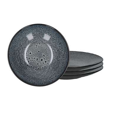Lot de 3 Assiettes creuses en grès Mirha 18 cm - gris / noir, Pomax (x 3) - Emballage abîmé et une assiette manquant