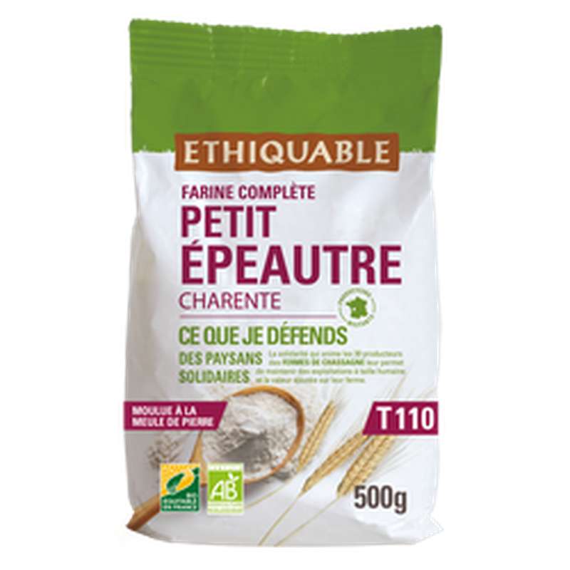 Le petit épeautre, ancêtre lointain du blé, se distingue par ses valeurs nutritionnelles remarquables grâce à sa richesse en protéines, fibres et minéraux, ainsi que sa teneur réduite en gluten qui en fait une excellente alternative au blé traditionnel. Cette farine complète T110, moulue artisanalement à la meule de pierre selon un procédé lent et doux sans échauffement, conserve la quasi-totalité des nutriments du grain tout en préservant ses qualités nutritionnelles intactes. Son goût subtil de noisette, sa texture moelleuse et sa belle couleur dorée à la cuisson en font un ingrédient parfait pour la réalisation de pains maison, gâteaux, tartes ou crêpes. CE QUE JE DEFENDS Petit épeautre cultivé en France sans pesticides, ni produits chimiques Culture à taille humaine Prix équitable rémunérateur et achat direct Projet de commerce équitable à impact Traçabilité et transparence de l'origine : Charente Entièrement fabriquée en France par les producteurs de la coopérative les Fermes de Chassagne Plus de valeur ajoutée pour les producteurs Origine France et issu du commerce équitable Fabriqué en France