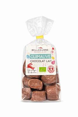 Chocolat au lait* (50%) (sucre de canne blond*1, beurre de cacao*1, lait entier en poudre*, pâte de cacao*1, vanille*1), sucre de canne roux*1, sirop de maïs*, eau, sirop de glucose*, gélatine de porc*, lait écrémé en poudre*, jus de citron concentré*.