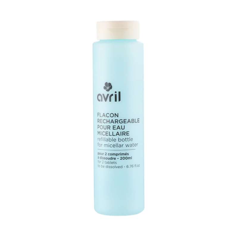Le flacon rechargeable pour eau micellaire Avril est l'accessoire indispensable pour adopter un autre mode de consommation. Fabriqué en France et conçu pour être réutilisé, ce flacon vous permet de dissoudre vos comprimés d'eau micellaire certifiée bio Avril en toute simplicité. Grâce à sa contenance de 250 ml, il est idéal pour les utilisateurs souhaitant réduire leurs déchets plastiques, dans la salle de bain, tout en profitant des bienfaits nettoyants et démaquillants de l'eau micellaire.