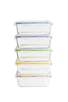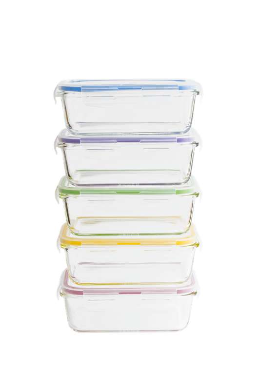 Set batchcooking de 5 boîtes rectangulaires verre, couvercle plastique (850 mL), qui permet d'organiser vos repas tout au long de la semaine