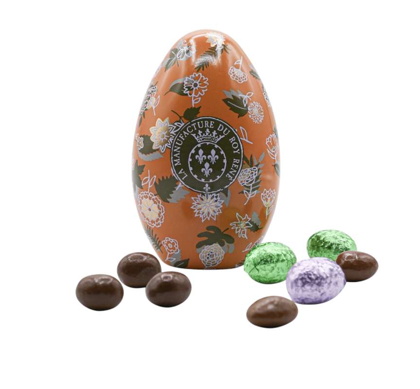 Présenté dans un œuf en métal réutilisable, cet assortiment signé Le Roy René réunit une sélection de petits œufs en chocolat. Les recettes varient, les textures se répondent, et chacun peut choisir selon ses préférences. L’écrin coloré ajoute une touche festive, tandis que les chocolats à l’intérieur accompagnent simplement les moments partagés pendant les fêtes de Pâques.